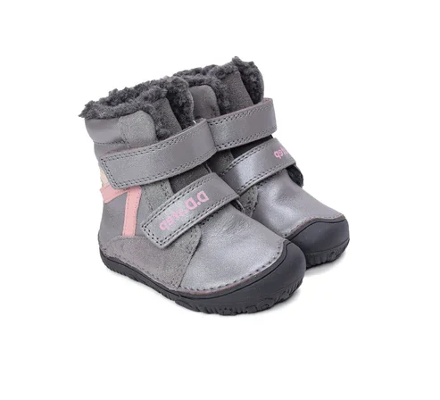 LASTNOSTI BOSONOGIH ČEVLJEV D.d.step usnjeni zimski škornji sivi z bleščicami 26-31