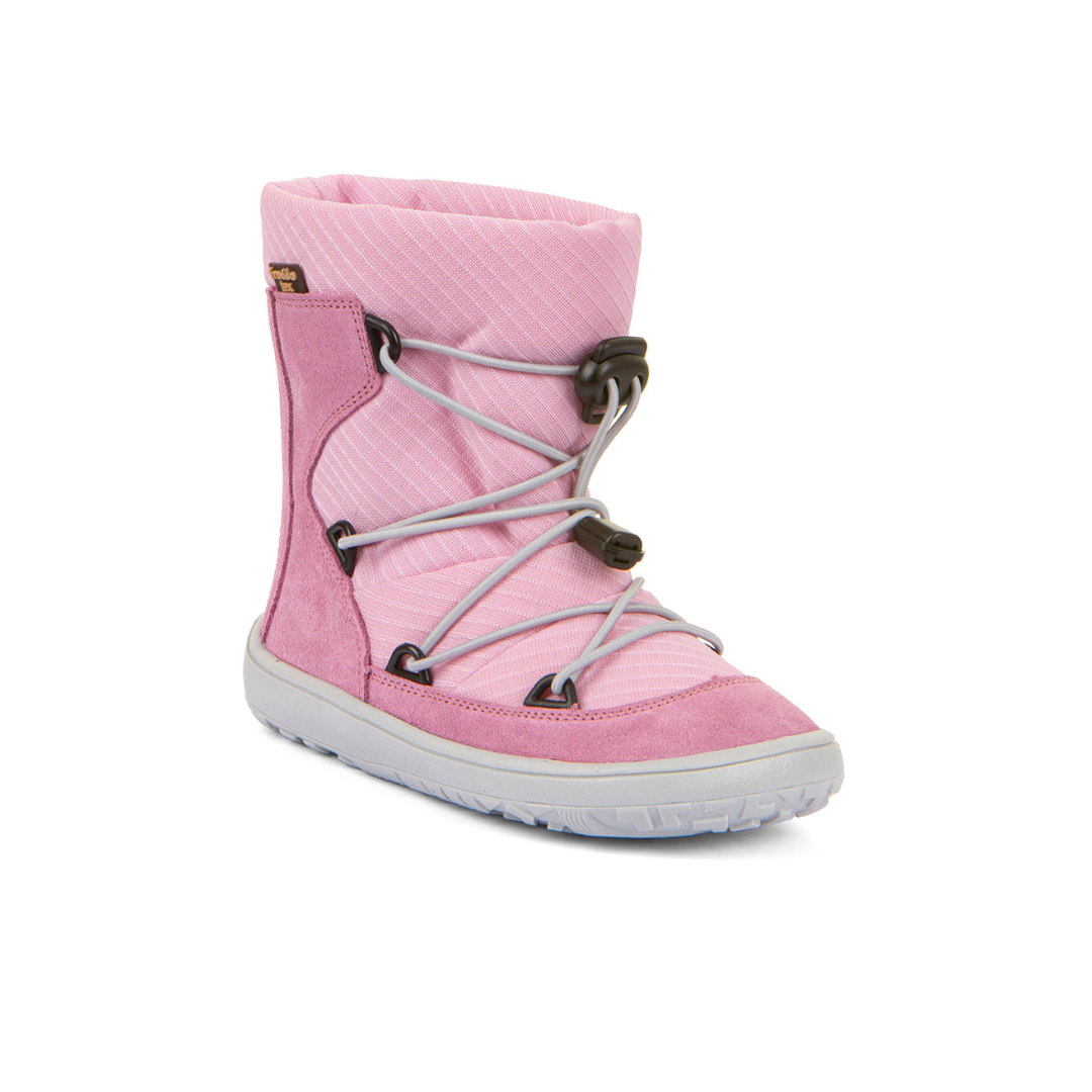 Bosonogi otroški čevlji Froddo tex track zimski škornji roza 25-33 so izjemni prožni čevlji, ki oponašajo boso hojo. Širši sprednji del za prste zagotavlja stabilnost stopal med hojo in spodbuja naraven in zdrav razvoj otroških stopal. 6mm tanek podplat omogoča otrokom, da čutijo tla pod nogami.