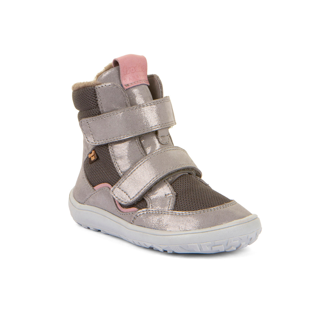 Froddo tex usnjeni zimski škornji silver 23-32 so izjemni prožni čevlji, ki oponašajo boso hojo. Širši sprednji del za prste zagotavlja stabilnost stopal med hojo in spodbuja naraven in zdrav razvoj otroških stopal. 6mm tanek podplat omogoča otrokom, da čutijo tla pod nogami.