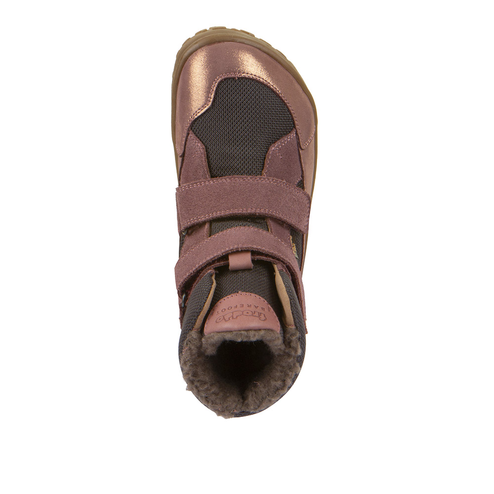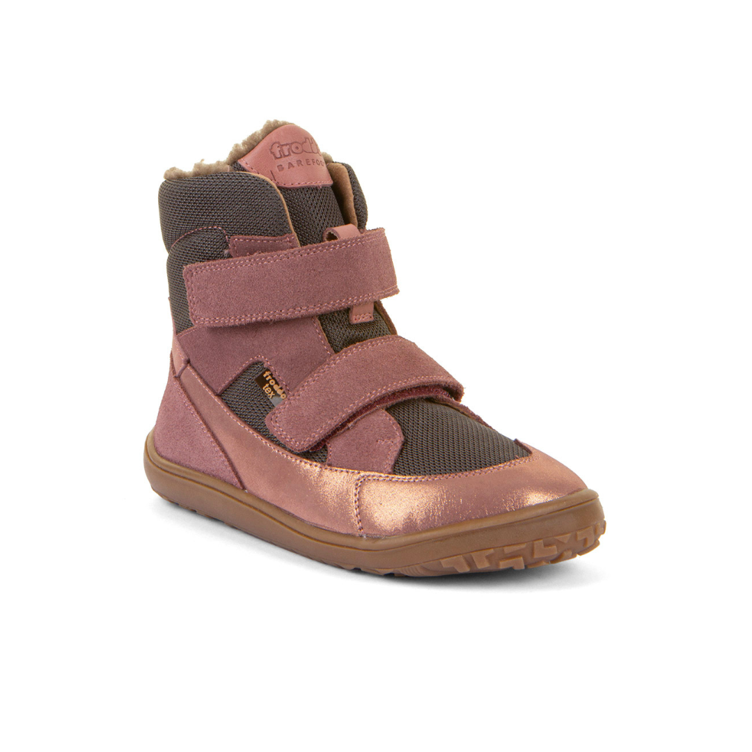 Froddo UP TEX usnjeni zimski škornji sivo roza 23-32 so izjemni prožni čevlji, ki oponašajo boso hojo. Širši sprednji del za prste zagotavlja stabilnost stopal med hojo in spodbuja naraven in zdrav razvoj otroških stopal. 6mm tanek podplat omogoča otrokom, da čutijo tla pod nogami.